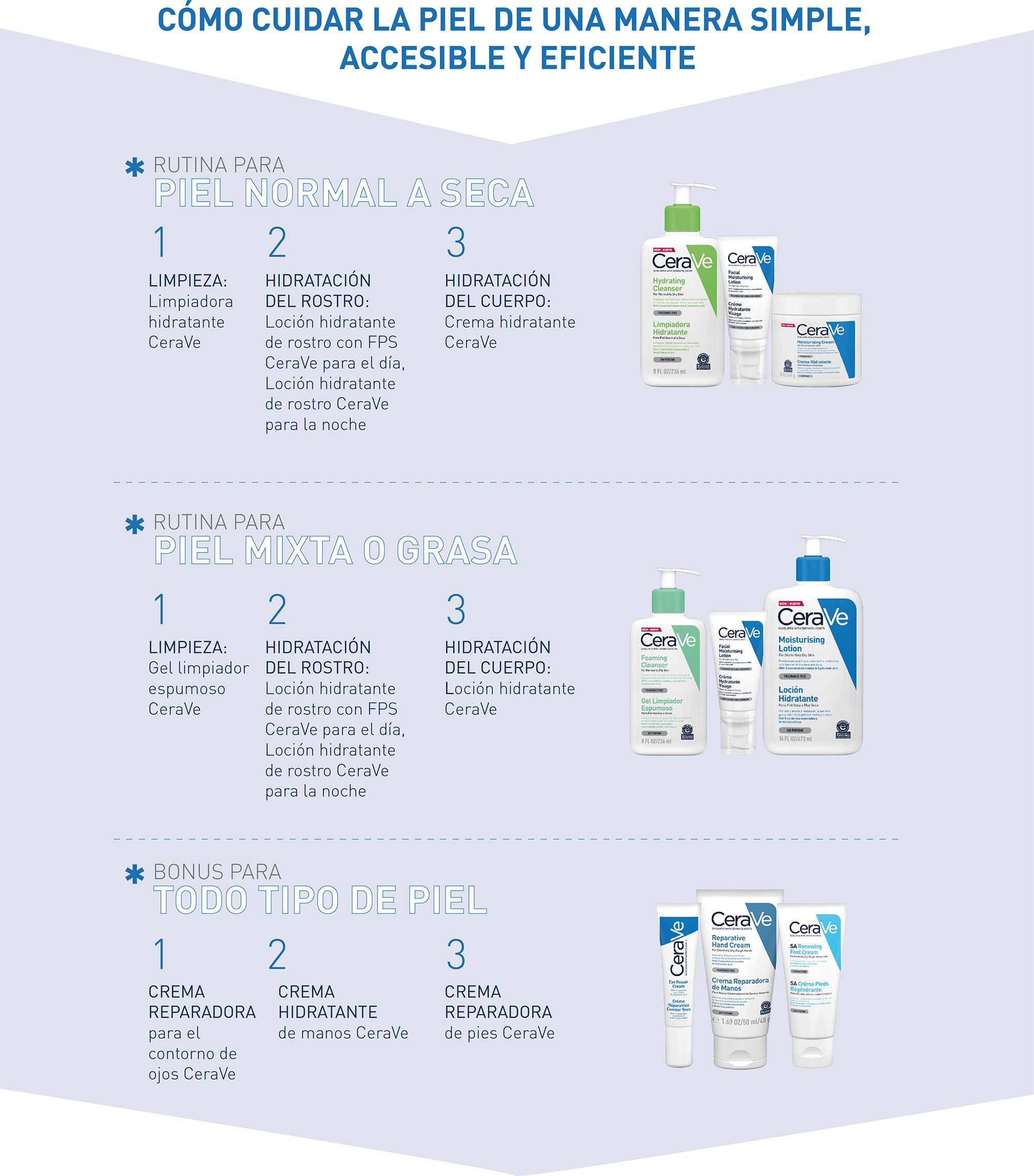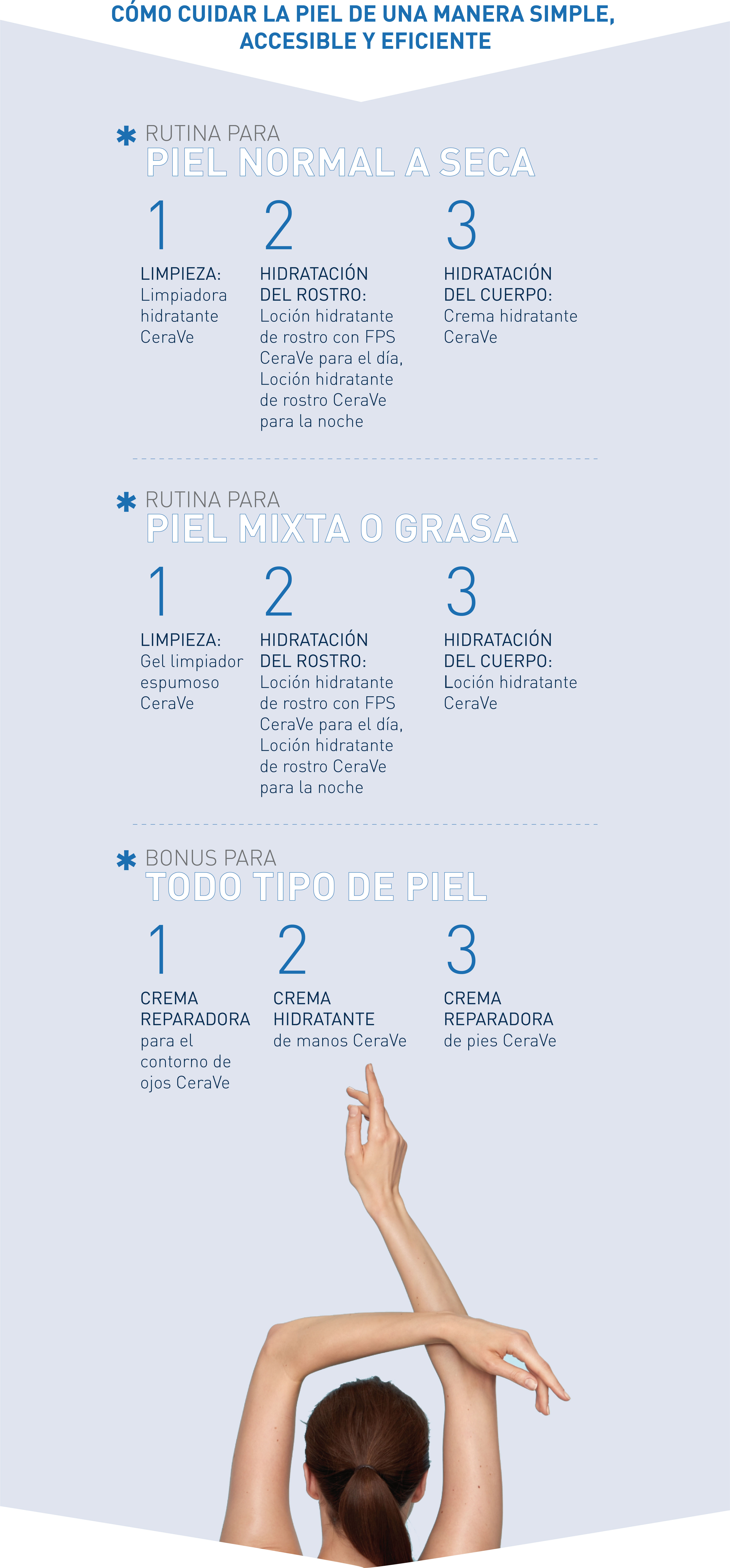 CeraVe hidrata, repara y restaura la primera barrera de la piel a través de una combinación única de tres ceramidas esenciales (ceramidas 1, 3 y 6-II). En Argentina las ceramidas están culturalmente vinculadas al cuidado del cabello, pero en realidad son un componente natural de la piel. Ellas, junto a los ácidos grasos y otros lípidos que conforman el balance hidrolipídico, son necesarias para una buena salud de la piel. Además, CeraVe posee en su fórmula un sistema único de liberación controlada de activos que mantiene la piel hidratada por 24 horas.